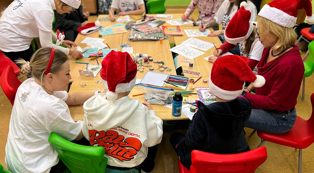 Były to spotkania, podczas których Dzieci wraz z Wolontariuszami i Wolontariuszkami wspólnie tworzyły kartki oraz świąteczne ozdoby. Magia działa się jednak też pomiędzy kolorowymi przedmiotami i twórczym działaniem. W chwili, gdy… nieśmiały Chłopiec z dumą prezentował własnoręcznie wykonany stroik. Gdy malowanie twarzy w renifery, bałwanki i śnieżynki dodawało odwagi Dzieciom – które wcześniej trzymały się z boku.