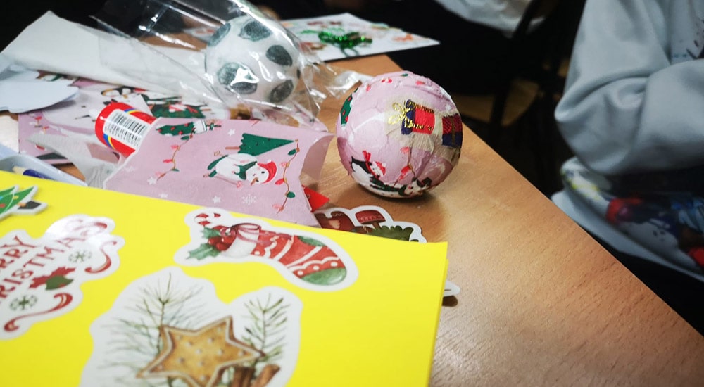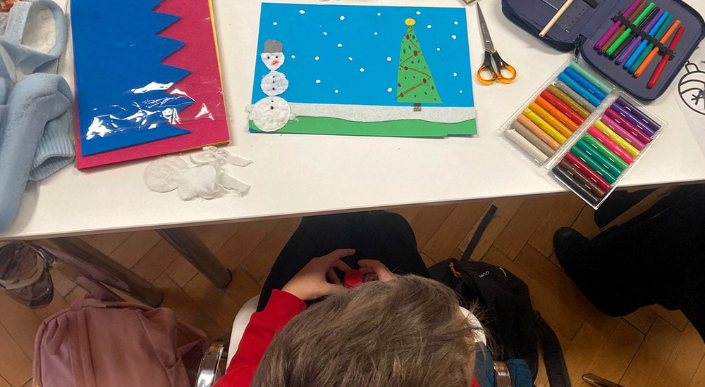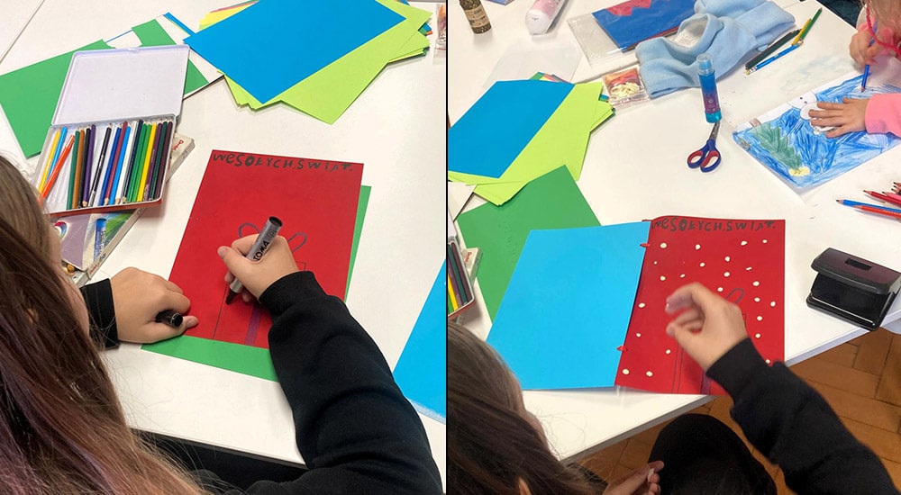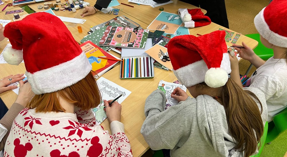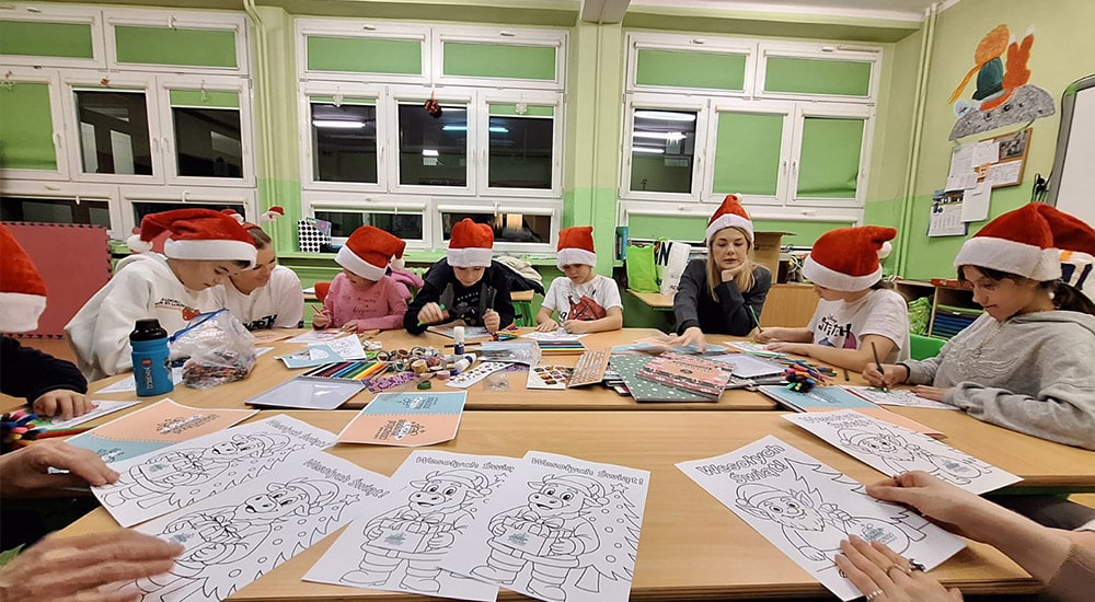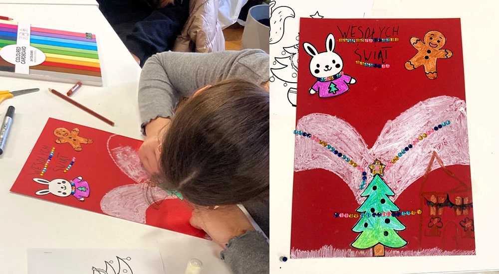 Dzieci tworzyły kartki świąteczne dla Darczyńców i Darczyńczyń, a także swoich bliskich i instytucji, z którymi współpracuje Akademia. Każda kartka była wyrazem wdzięczności i kreatywności.