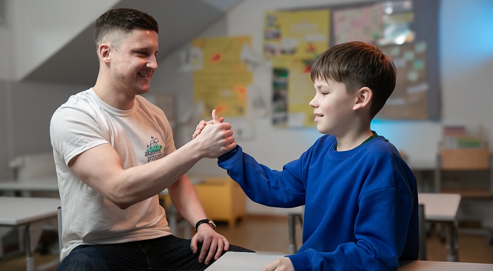 Wolontariusze opowiadają mi też jakie mają wykształcenie, ale to nie ono decyduje o powodzeniu tej współpracy. Niektórzy wspominali, że sami doświadczyli w dzieciństwie trudności – byli odrzuceni, wyśmiewani, bardzo nieśmiali czy czuli się wykluczeni – często właśnie takie osoby szybciej łapią kontakt z moimi uczniami. Rozumieją ich emocje, potrafią spojrzeć z podobnej perspektywy. I to naprawdę przynosi niesamowite efekty. Widzę wtedy sukces po obu stronach – zarówno Wolontariusza, jak i mojego młodego człowieka – bez względu na to, czy to uczeń z klas 1–3, czy starszy.