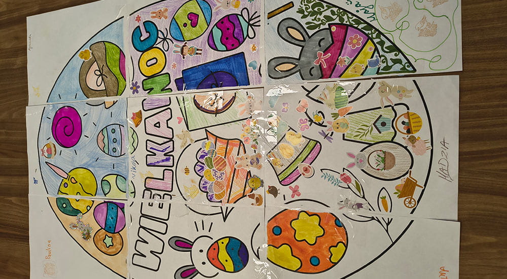 „Najbardziej zapadła mi w pamięć radość Dzieci oraz moment, kiedy wszystkie części zostały połączone w jedną dużą, kolorową pisankę”.