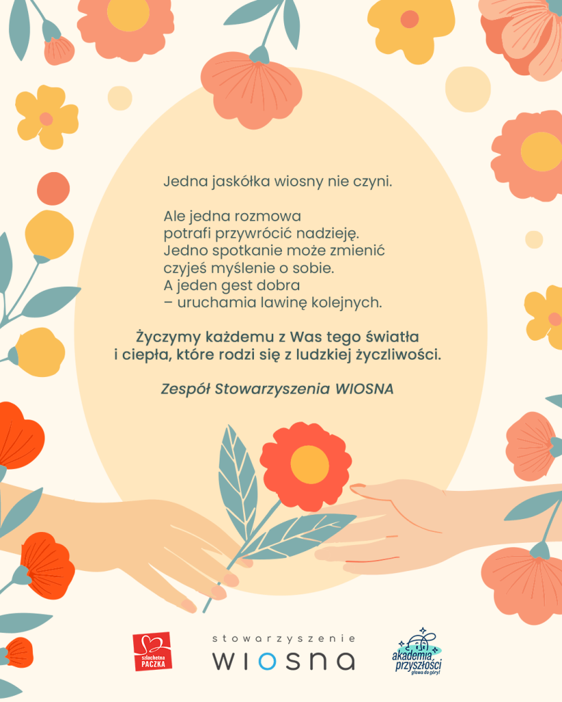 W Akademii Przyszłości wielkanocne spotkania dla Dzieci to coś więcej niż wspólna zabawa – to czas kreatywnych warsztatów, ruchu i wyzwań, które naturalnie rozwijają współpracę, wzmacniają pewność siebie i budują kompetencje społeczne. Podczas zajęć Dzieci nie tylko malowały pisanki czy szukały czekoladowych jajek, ale też uczyły się wytrwałości i nawiązywały relacje. W całej Polsce Wolontariusze i Wolontariuszki stworzyli przestrzeń pełną życzliwości i akceptacji – taką, w której można po prostu dobrze się bawić i czuć się ważnym i ważną. Zainspiruj się tymi pomysłami i zobacz, co możesz przenieść do wspólnej zabawy ze swoimi Dziećmi lub Podopiecznymi.