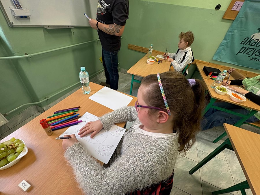 W świątecznym klimacie Podopieczni i Podopieczne zanurzyli się w świat komiksów – tworzyły historie, malowały kurki i jajka. Podczas spotkania w Akademii Przyszłości Dzieci uczestniczyły w warsztatach z tworzenia komiksów – od kreowania bohaterów, przez budowanie fabuły, aż po wyrażanie emocji za pomocą mimiki i gestów.